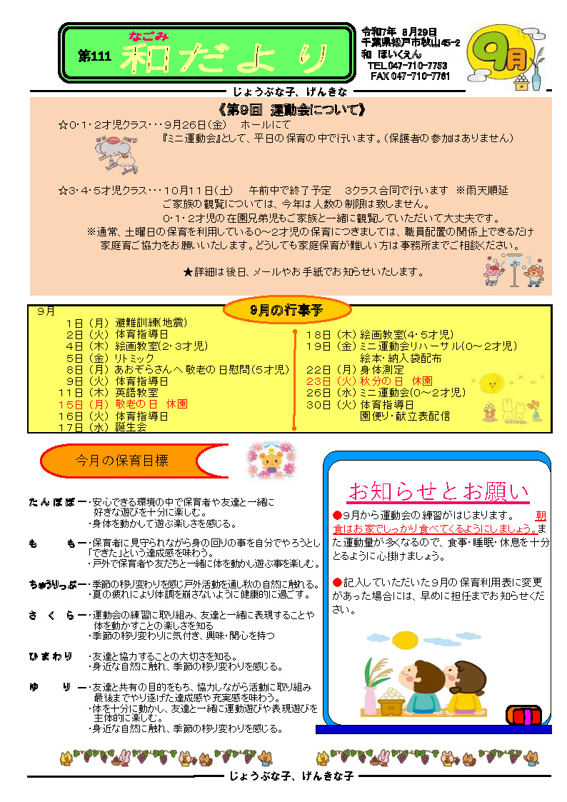 保育園だより 2025年9月号