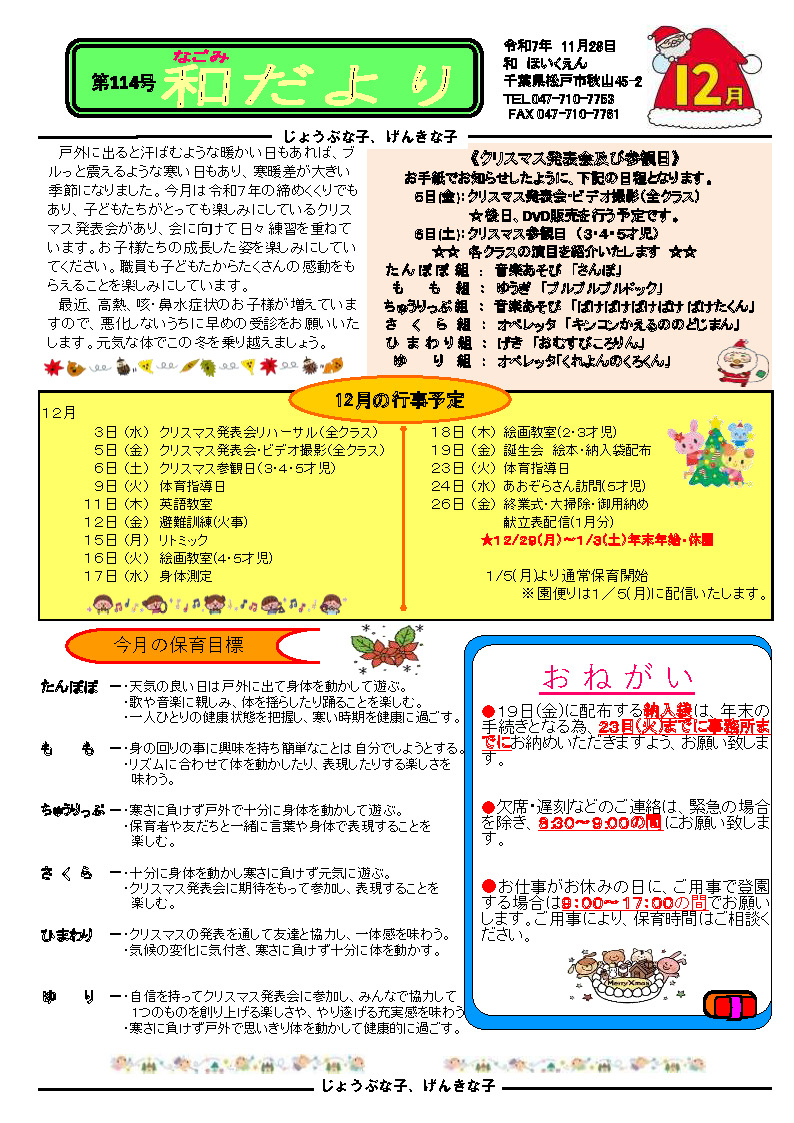 保育園だより 2025年12月号のダウンロードはこちら